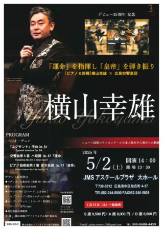 • 「運命」を指揮し「皇帝」を弾き振り [ピアノ&指揮]横山幸雄 × 広島交響楽団