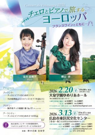 チェロとピアノで旅するヨーロッパ フランスワインとともに