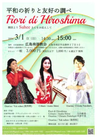「平和の祈りと友好の調べ」 Fiori di Hiroshima 韓国より Suheeさんをお迎えして