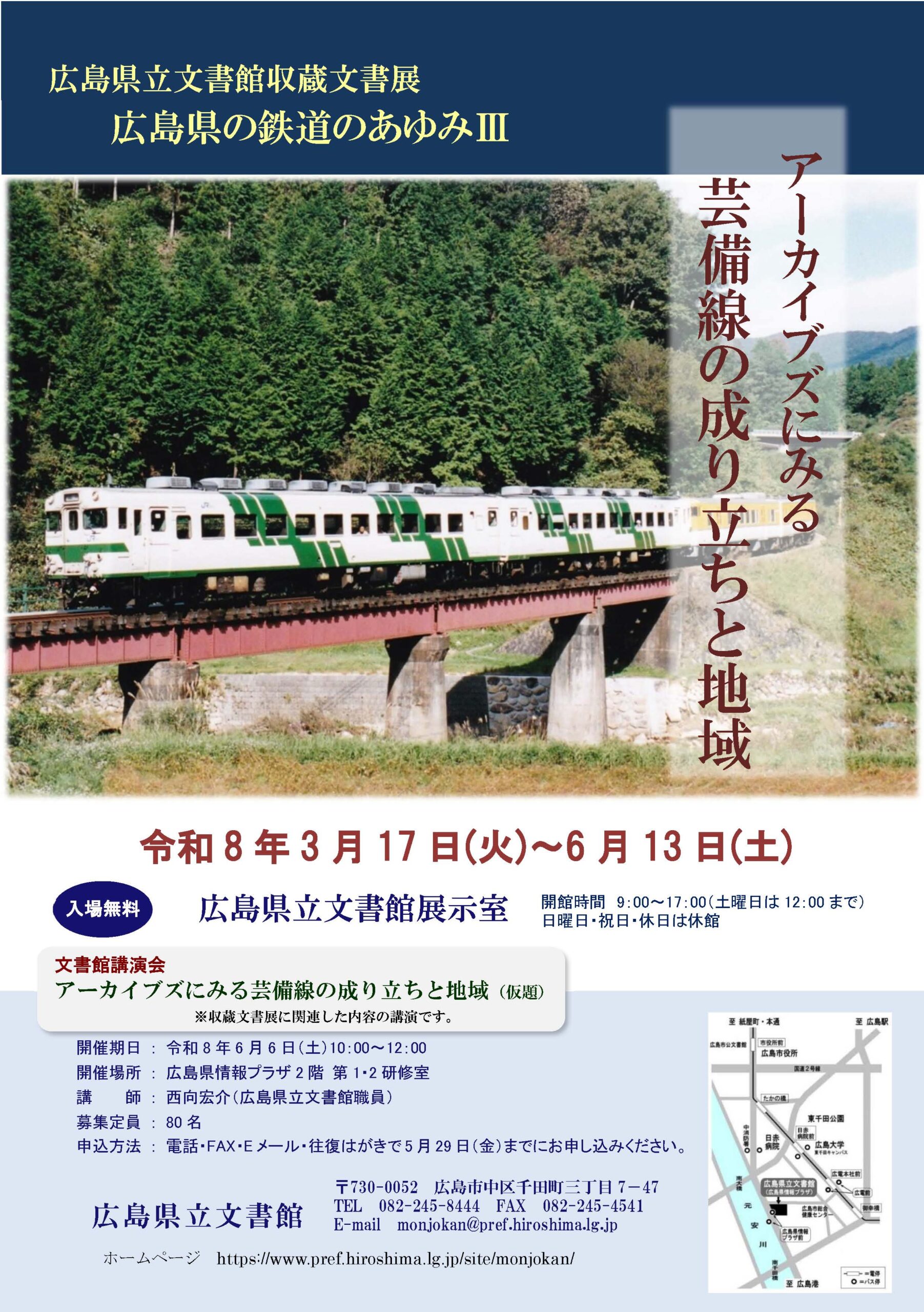広島県立文書館収蔵文書展「アーカイブズにみる芸備線の成り立ちと地域」(6月...