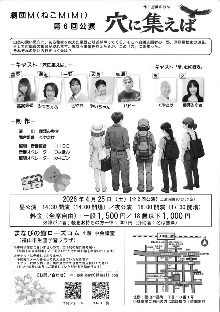 劇団M(ねこMiMi)第6回公演 穴に集えばーそれぞれの想いを胸に穴の前に集まった5人の物語ー