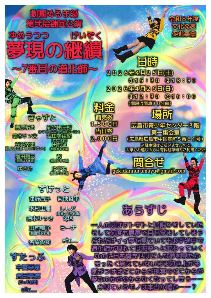 2026年4月25日(土)①15:30 ②18:304月26日(日)③12:30 ④16:00※開演は開演30分前