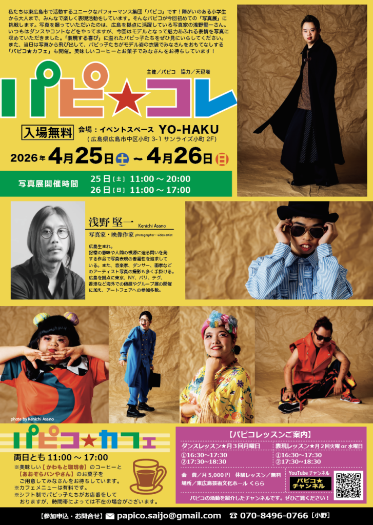 東広島市のユニークなパフォーマンス集団「パピコ」による写真展