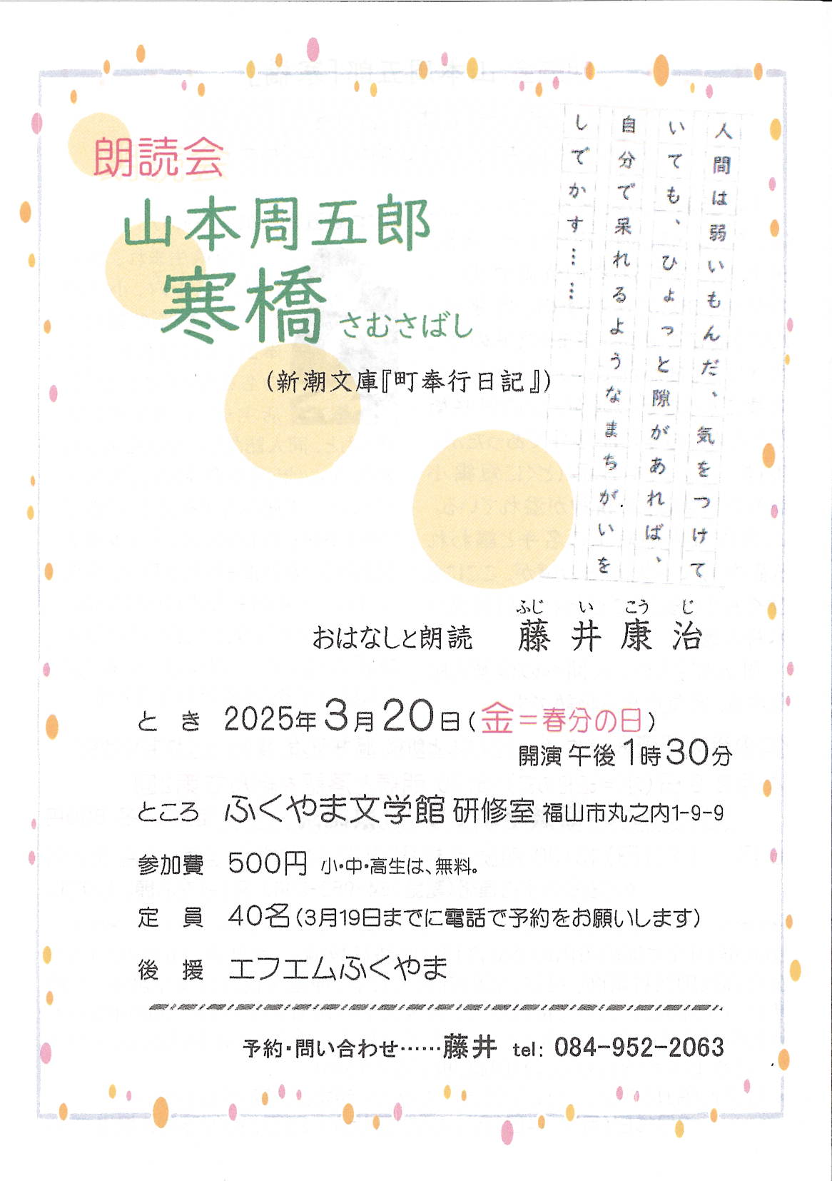 朗読会 山本周五郎 寒橋
