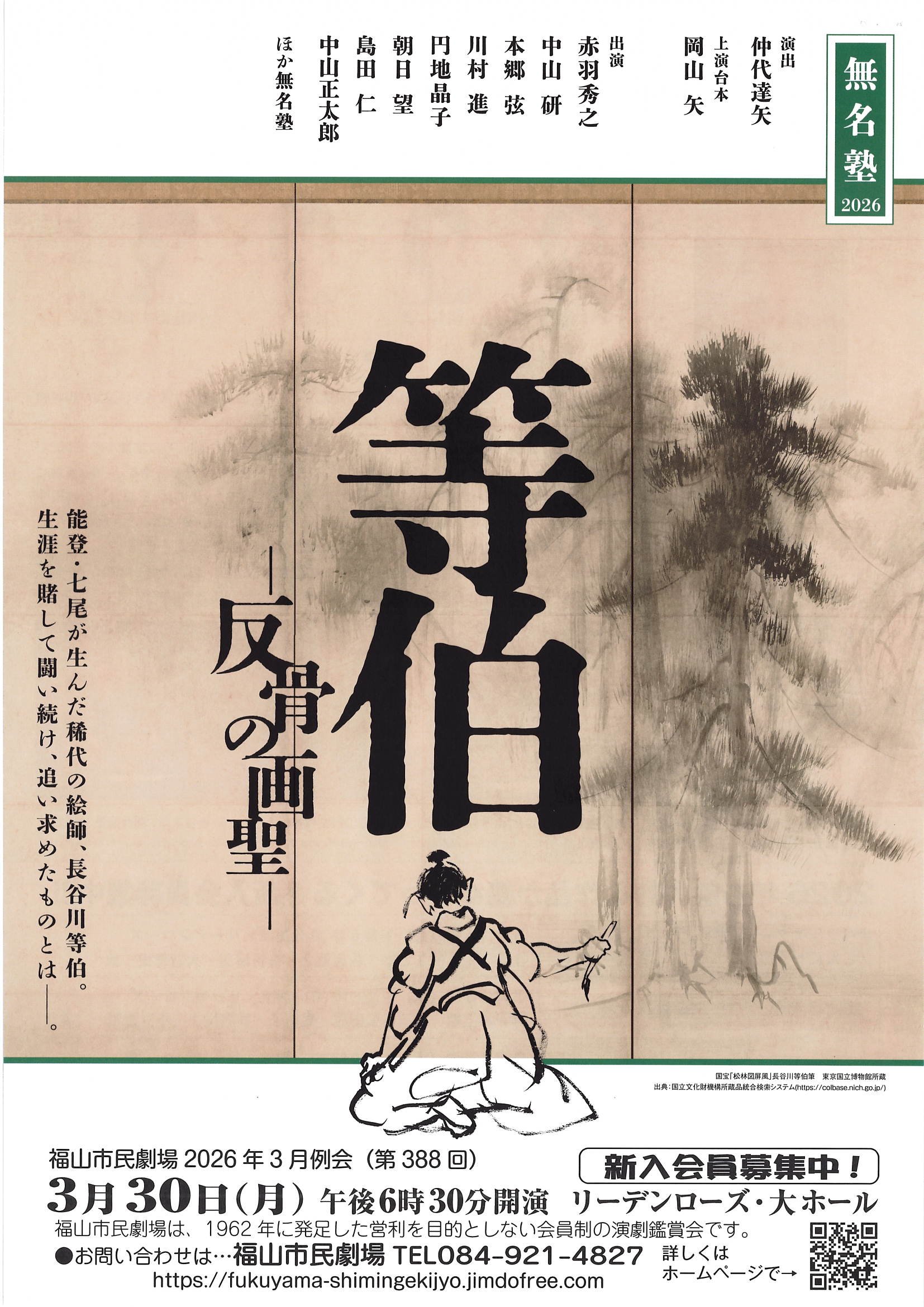 福山市民劇場2026年3月例会(第388回) 無名塾「等伯―反骨の画聖―」