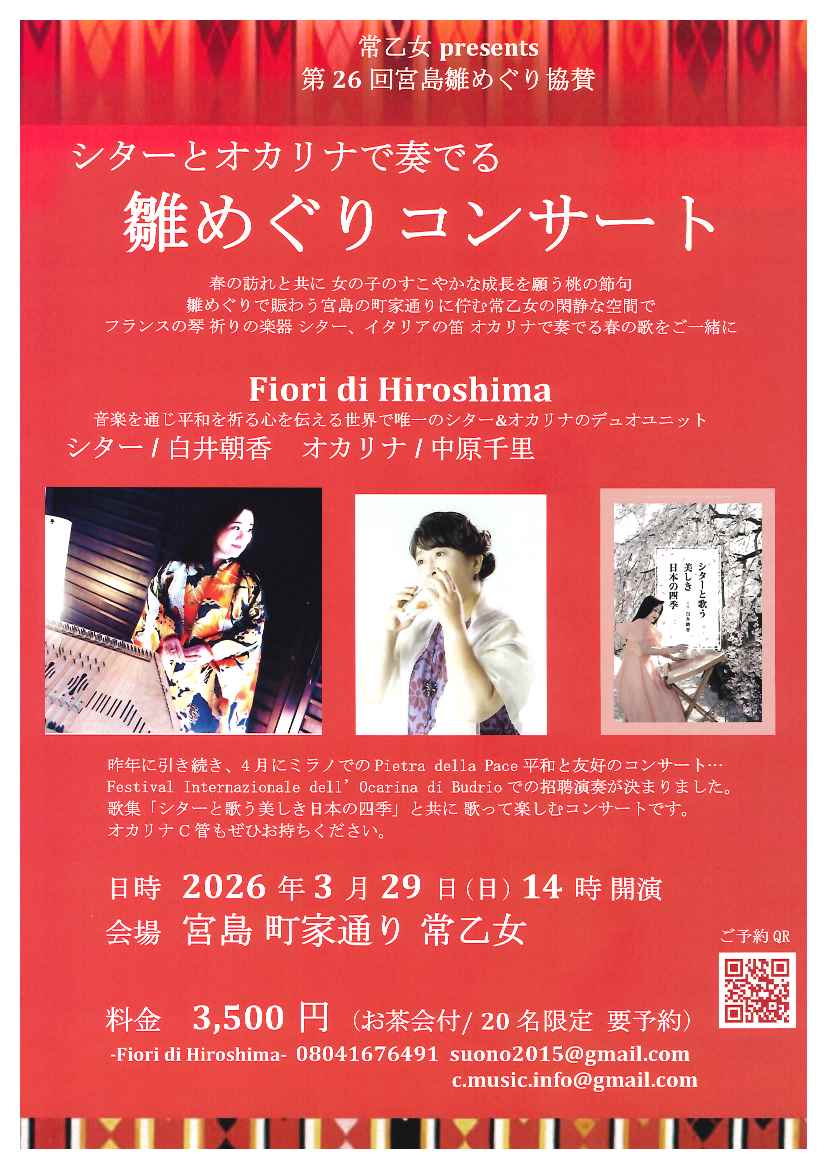 常乙女presents 第26回宮島雛めぐり協賛 シターとオカリナで奏でる雛めぐりコンサート