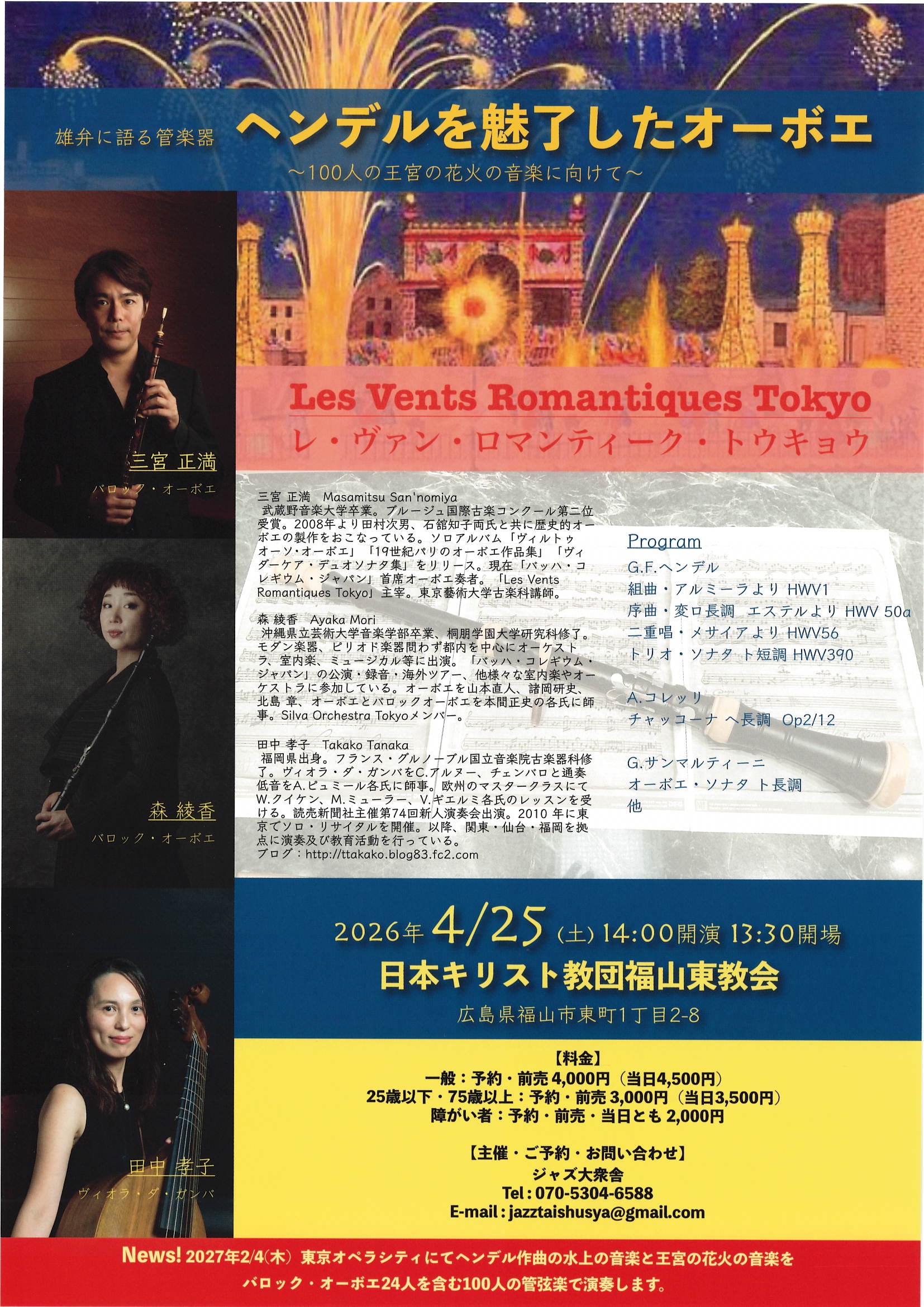 雄弁に語る管楽器 ヘンデルを魅了したオーボエ~100人の王宮の花火の音楽に向けて~